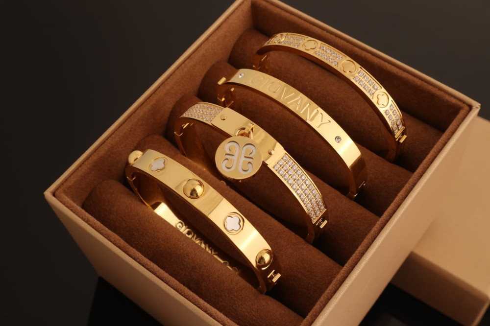 == طقم 4 أساور ماركة جيوفاني ماستر استنال اسيل بفصوص زيركون كبس الماس عدد 4 اساور